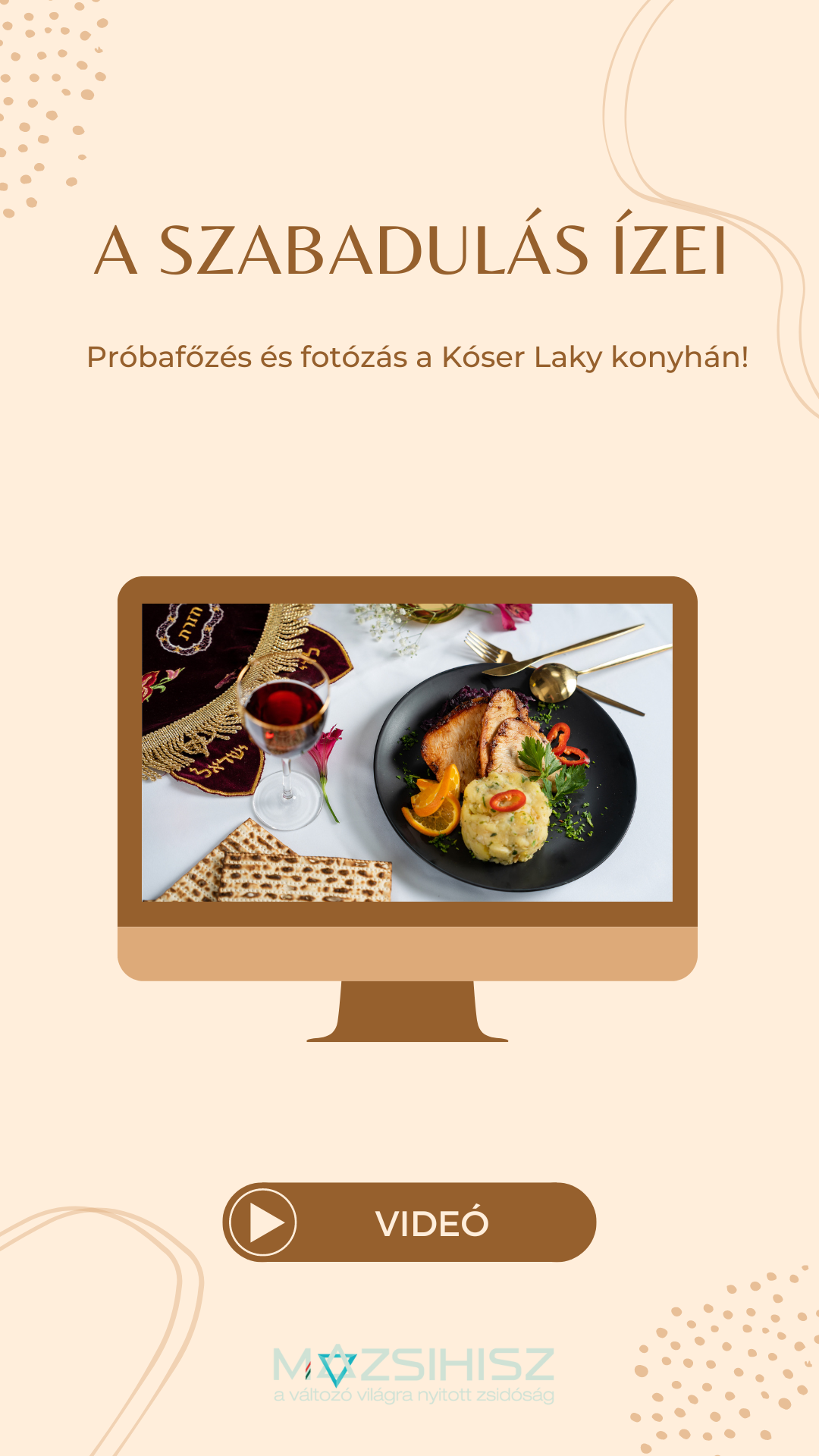 Hamarosan beköszönt pészach, a szabadság ünnepe, amelyet ősi hagyományaink szerint közösségi és családi széderesték megtartásával ülünk meg. A szédervacsora.mazsihisz.hu címmel létrehozott oldalunkon az otthoni széderestére kínálunk komplett menüket házhoz szállítással is.