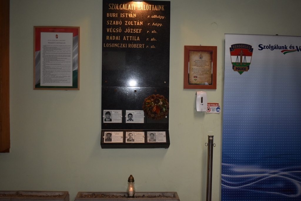 A megemlékezés koszorúját Czinege László rendőr dandártábornok vármegyei rendőrfőkapitány helyezte el a főkapitányságon emelt emléktáblára.
