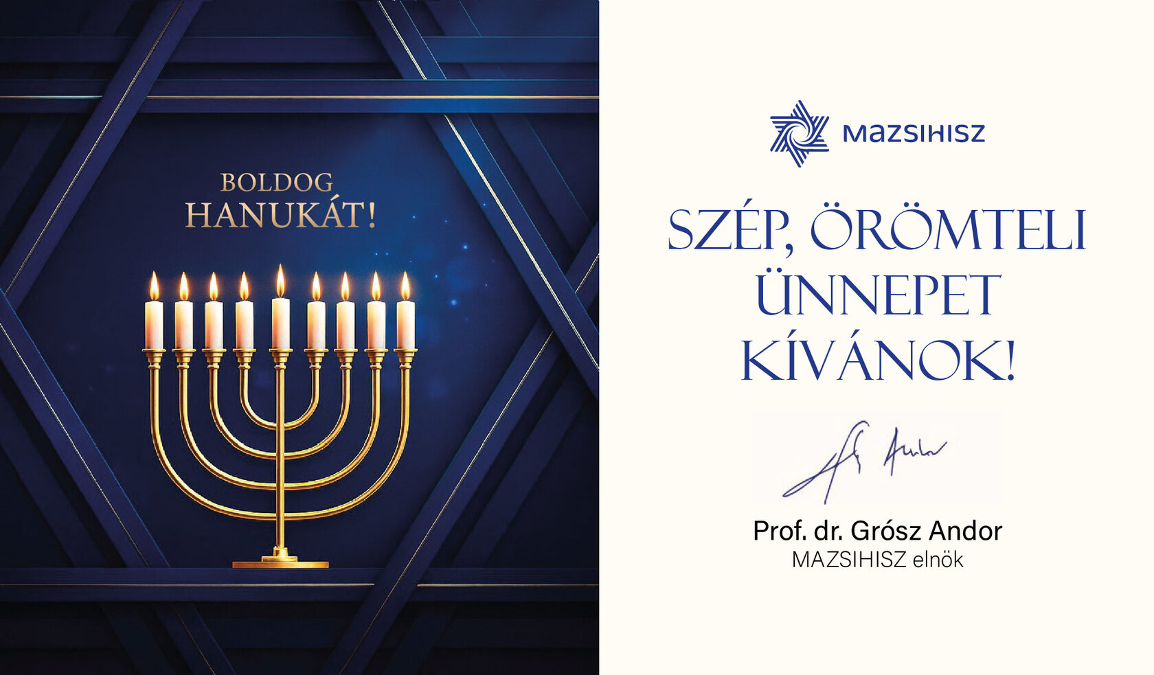 „Ma, amikor meggyújtjuk az első mécsest, gondoljunk a Makkabeusok bátorságára, az olaj csodájára, és arra, hogy nekünk is feladatunk tovább vinni a reményt”Kedves Barátaim, Kedves Zsidó Testvéreim!